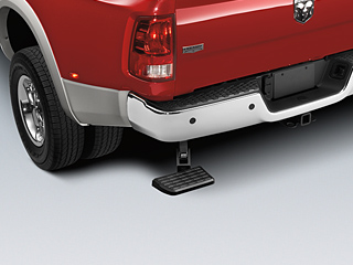 - Description: Black, swing-out corner Bed Step is 11-inches wide and six inches deep. Designed for Ram Trucks equipped with single exhaust.