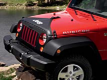 Khaki, T-style, matches top and tire covers, with Jeep logo. Covers just the hood, hoto is of full front end cover which includes a T hood cover